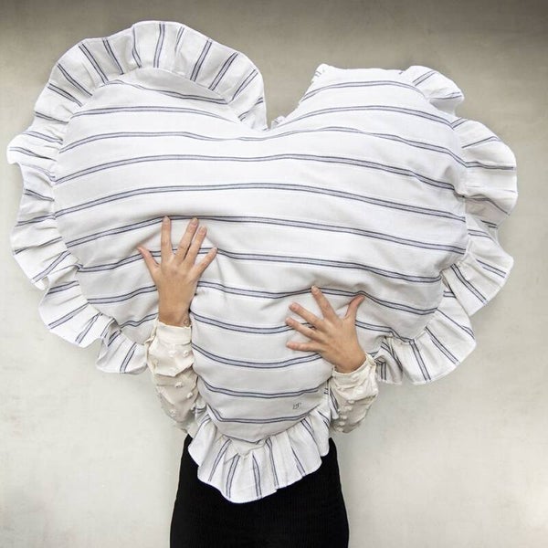 AN-CUSHION HEARTNS Heart Cushion 83x75 Naturel Stripe Chambray (with inner filling)